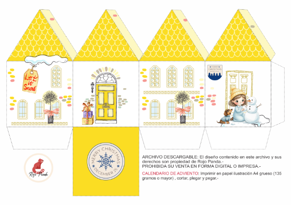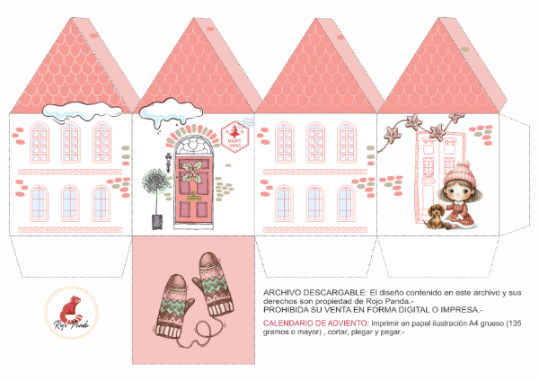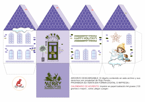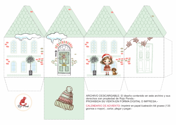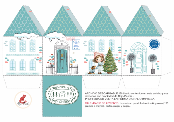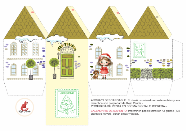 Te regalamos 7 diseños únicos y adorables de casitas de Adviento, como la que ves en la imagen, listas para imprimir, cortar, doblar y pegar en casa.